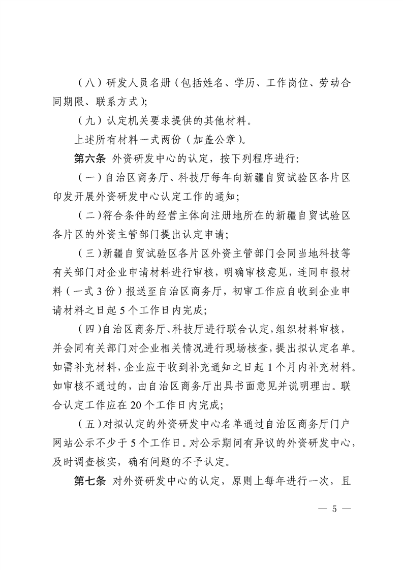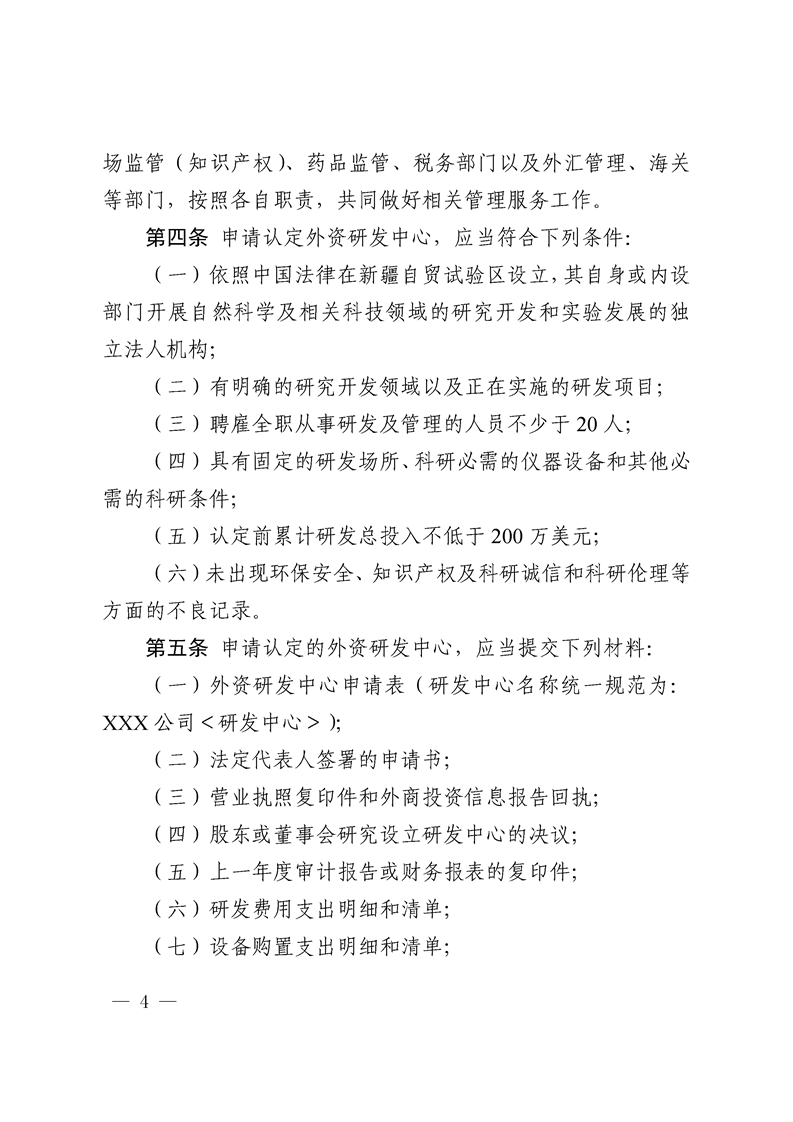关于印发《中国(新疆)自由贸易试验区鼓励设立和发展外资研发中心暂行办法》的通知